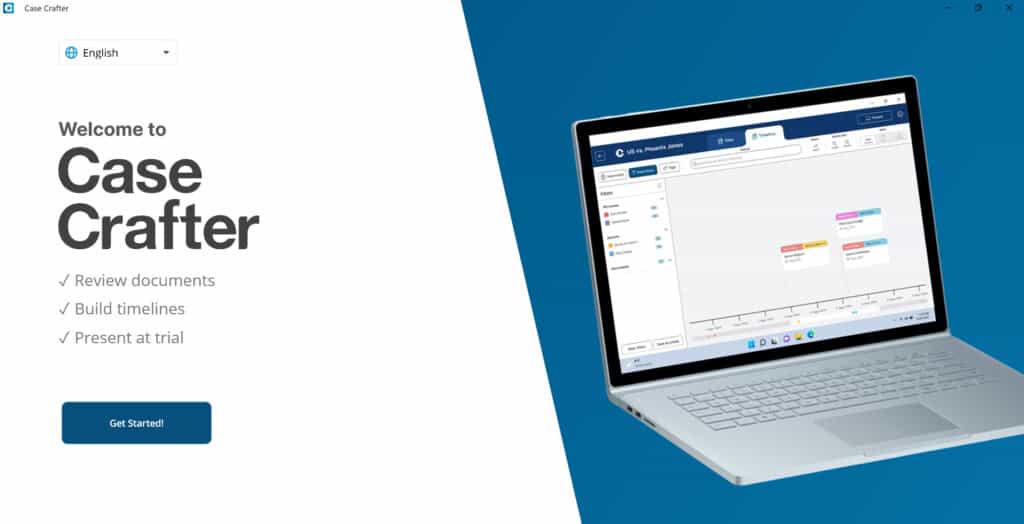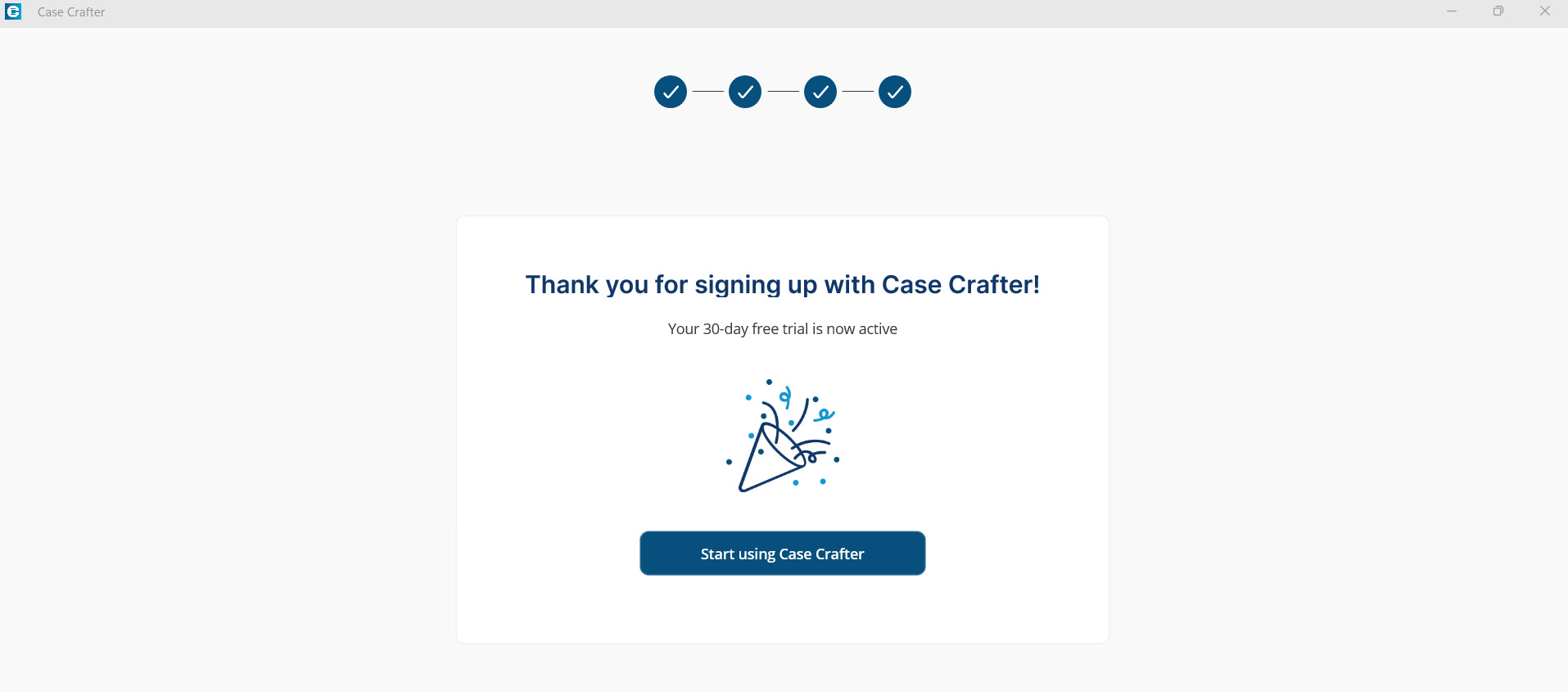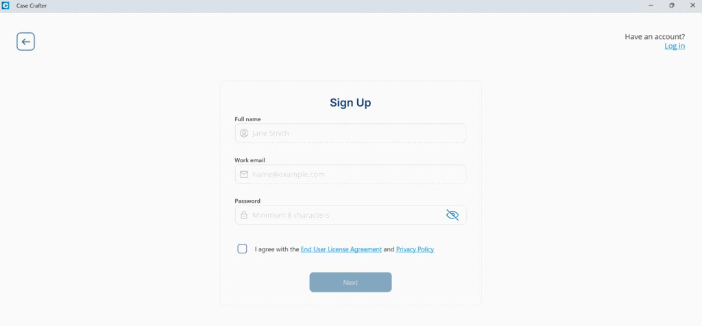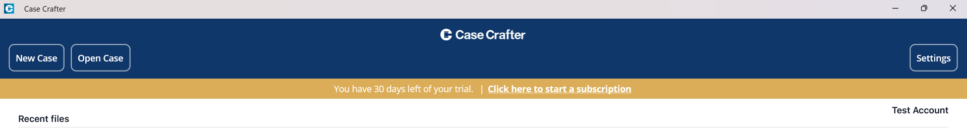 After you have installed the Case Crafter app, open the app. You are presented with the Welcome to Case Crafter screen.