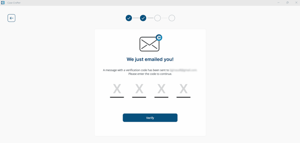 A 4-digit code is sent to the email address you used to sign up. Enter the code from the email and click Verify.