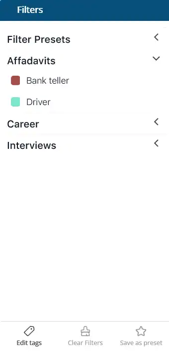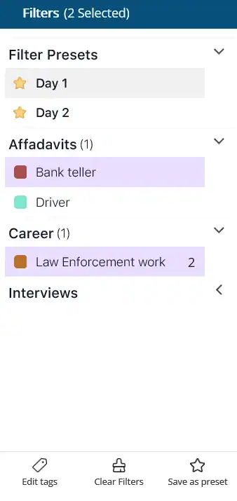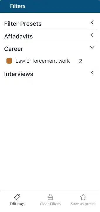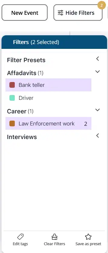 Select one or more tags. Only the events with the selected tags will be displayed on the timeline. NOTE: On a Mac you need to hold down the Option key to select more than one filter.